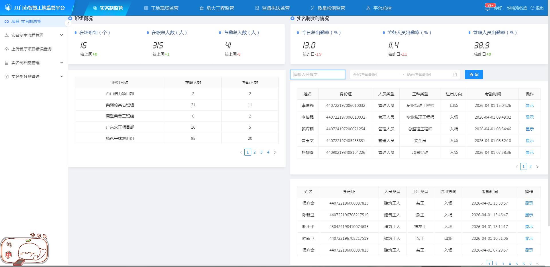 智慧工地监管平台数据截图