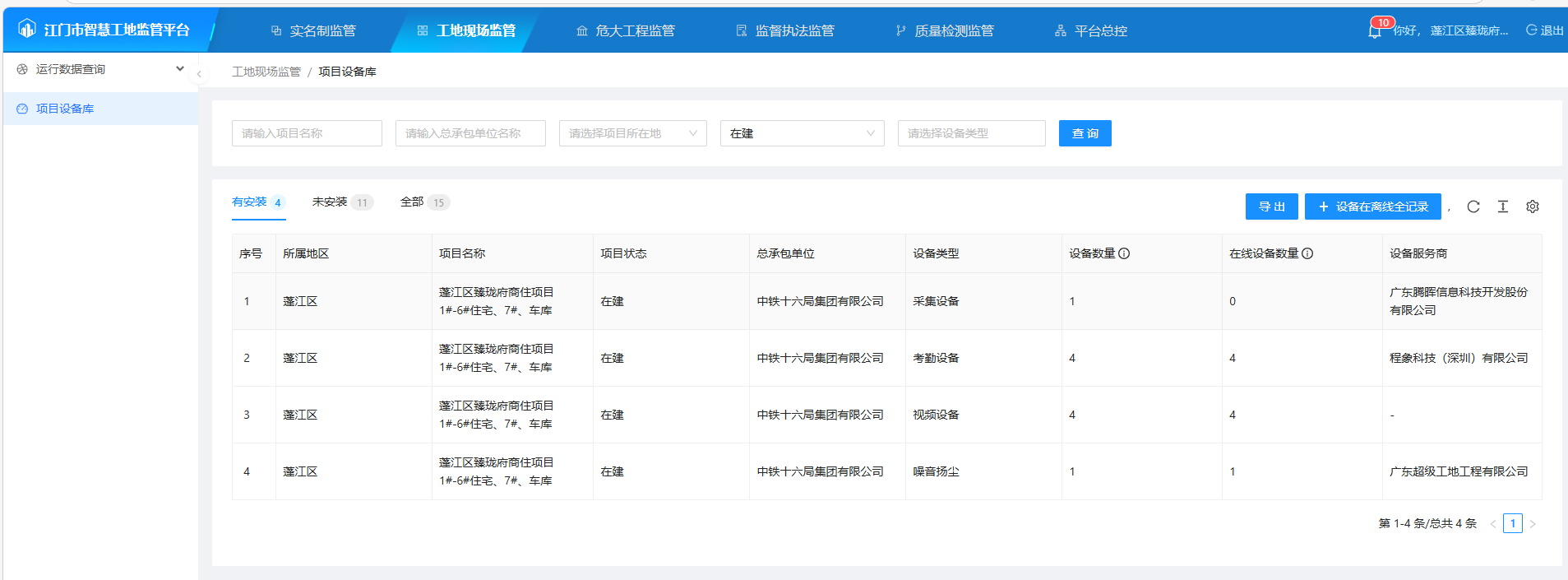 智慧工地监管平台数据截图